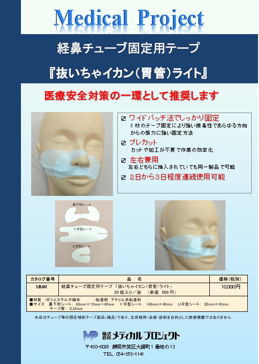 経鼻チューブ固定用テープ 『抜いちゃイカン(胃管)ライト』